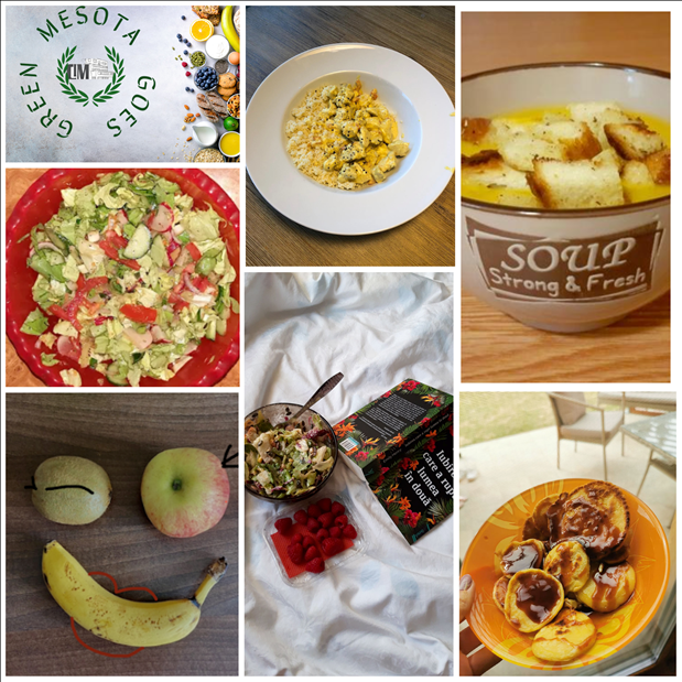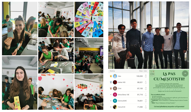 Prima activitate a fost o continuare a discuțiilor de la ora de engleză pe tema "An Eco-friendly diet" . O echipă de meșotiști din clasa a X-a E a acceptat provocarea de a adopta o dietă sustenabilă: au creat un meniu vegan bazat pe produse bio, au găsit alternative bazate pe plante pentru rețele lor preferate și pe parcursul vacanței de primăvară au pregătit diverse rețete familiilor și prietenilor. Rezultatul: farfurii colorate, zâmbete, povești, toate adunate într-o carte ( an e-book as we are eco-friendly).